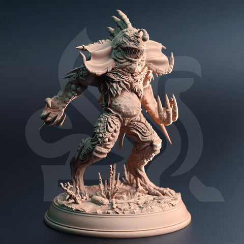 - Name: Ahznagol - Angler Gluglin - Fishfolk Abomination- Set: Darkest Depths- Scale: 32mm (25mm base)- Resolution: 0.03mm (3 Microns)- Material: Resin - Color: Gray / Fleshy- Base: Included as pictured in the image- Model Creator: DM StashNOT PAINTED Miniatures are printed in the original 32mm scale, if you need a different scale please request it. All miniatures are printed at 0.03mm resolution (3 Microns) on a 4K LCD screen, this resulting in high-quality miniature prints. All prints are washed and cured to ensure as best a finish as possible. We try our very best to ensure supports are removed, but it is always possible that some light cleaning may be required.Fates Forge is officially licensed to sell physical prints of DM Stash.Please be aware the miniatures are printed in resin and so these models are not suitable for children. It is recommended to seal the Minifigures with a coat of primer before using them in your games.