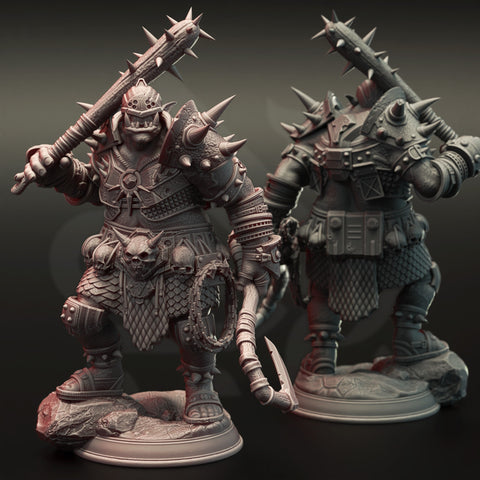 - Name: Bruz the Basher - Second In Charge- Set: Orcish Incursion- Scale: 32mm- Resolution: 0.03mm (3 Microns)- Material: Resin - Color: Gray / Fleshy- Base: Included as pictured in the image- Model Creator: DM Stash Miniatures are printed in the original 32mm scale, if you need a different scale please request it. All miniatures are printed at 0.03mm resolution (3 Microns) on a 4K LCD screen, this resulting in high-quality miniature prints. All prints are washed and cured to ensure as best a finish as possible. We try our very best to ensure supports are removed, but it is always possible that some light cleaning may be required.Fates Forge is officially licensed to sell physical prints of DM Stash.Please be aware the miniatures are printed in resin and so these models are not suitable for children. It is recommended to seal the Minifigures with a coat of primer before using them in your games.