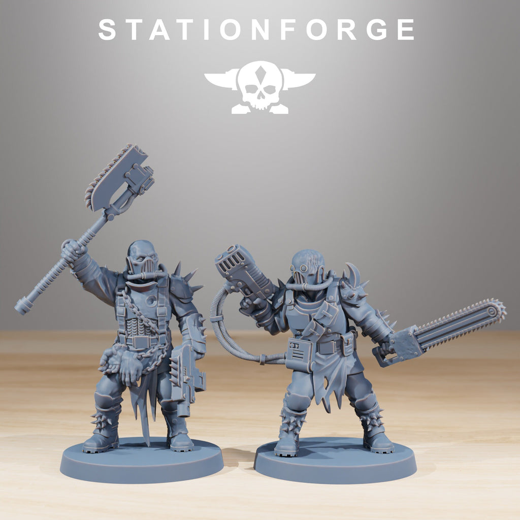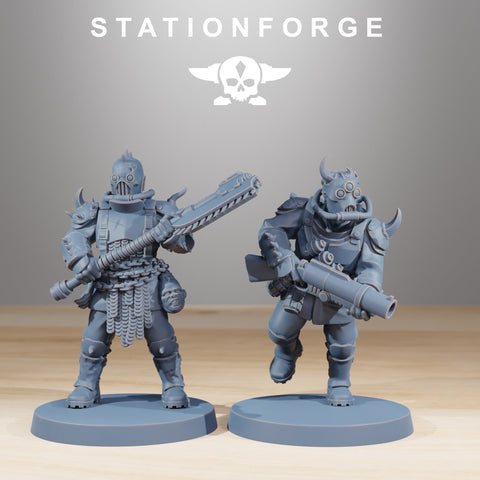 - Set: Station Forge - Resolution: 0.03mm (3 Microns) - Scale: Scaled to fit an 25mm base - Material: Resin - Color: Gray / Fleshy - Base: none13-part set consisting of 12 Corrupted Guards (scaled for 25mm base) alongside 1 Mutant (scaled for 40mm base).*NO BASE INCLUDED*All miniatures are printed at 0.03mm resolution (3 Microns) on a 4K LCD screen, this resulting in high-quality miniature prints. All prints are washed and cured to ensure as best a finish as possible. We try our very best to ensure supports are removed, but it is always possible that some light cleaning may be required.All miniatures will be posted in pieces to limit damage during postage.Fates Forge is officially licensed to sell physical prints of The Dragon TrappersPlease be aware the miniatures are printed in resin and so these models are not suitable for children. It is recommended to seal the Minifigures with a coat of primer before using them in your games.
