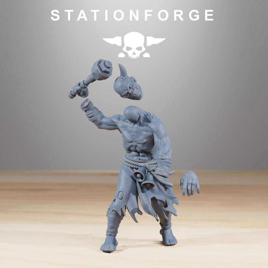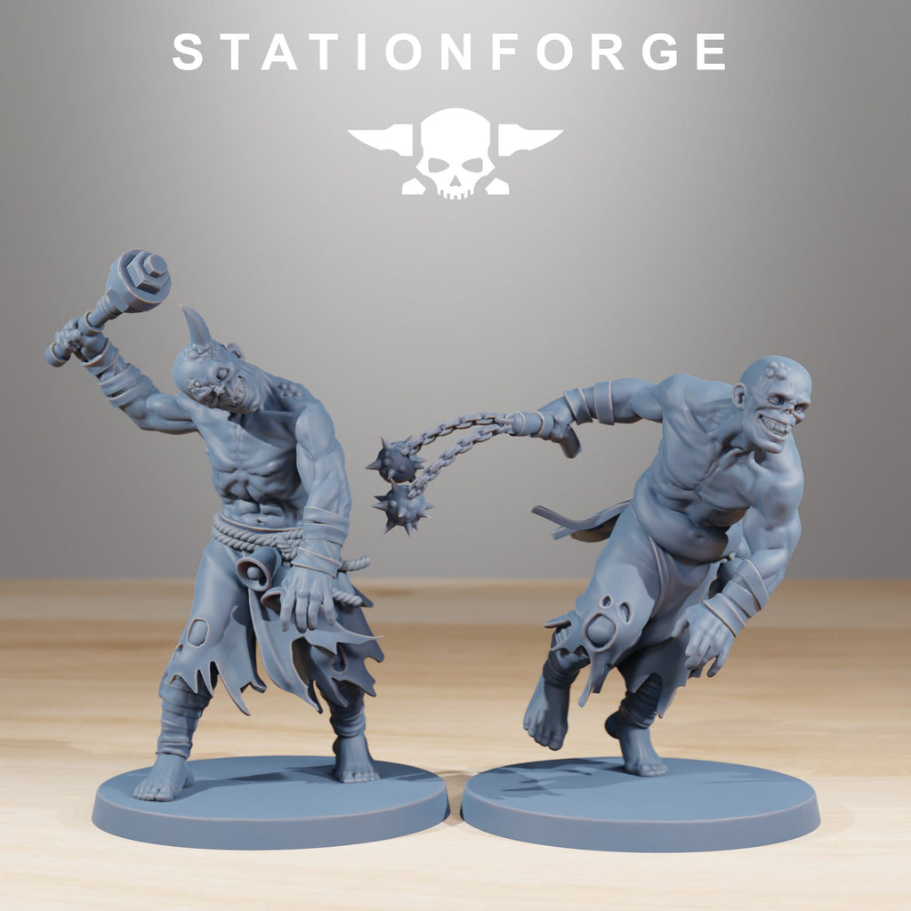 - Set: Station Forge - Resolution: 0.03mm (3 Microns) - Scale: Scaled to fit an 25mm base - Material: Resin - Color: Gray / Fleshy - Base: none11-part set consisting of 10 Corrupted Guards (scaled for 25mm base) alongside 1 Mutant (scaled for 40mm base).*NO BASE INCLUDED*All miniatures are printed at 0.03mm resolution (3 Microns) on a 4K LCD screen, this resulting in high-quality miniature prints. All prints are washed and cured to ensure as best a finish as possible. We try our very best to ensure supports are removed, but it is always possible that some light cleaning may be required.All miniatures will be posted in pieces to limit damage during postage.Fates Forge is officially licensed to sell physical prints of The Dragon TrappersPlease be aware the miniatures are printed in resin and so these models are not suitable for children. It is recommended to seal the Minifigures with a coat of primer before using them in your games.