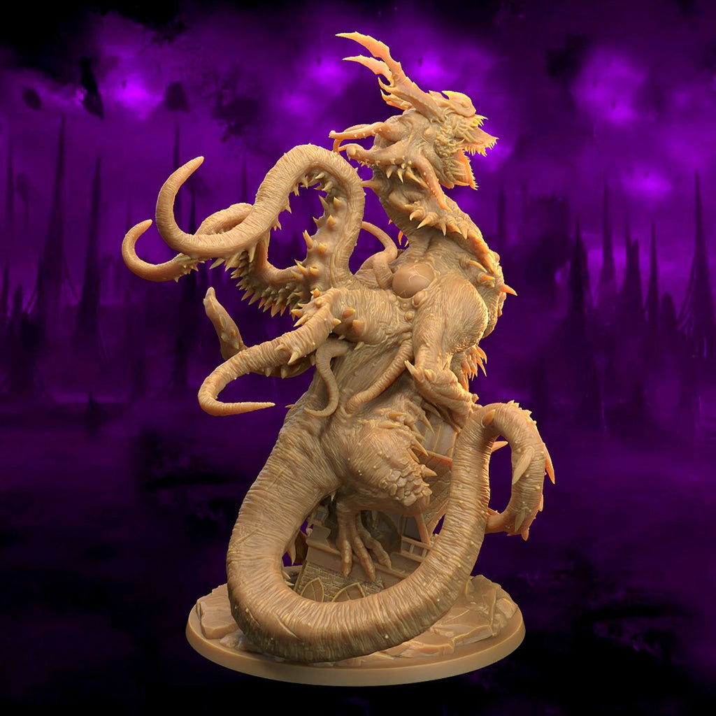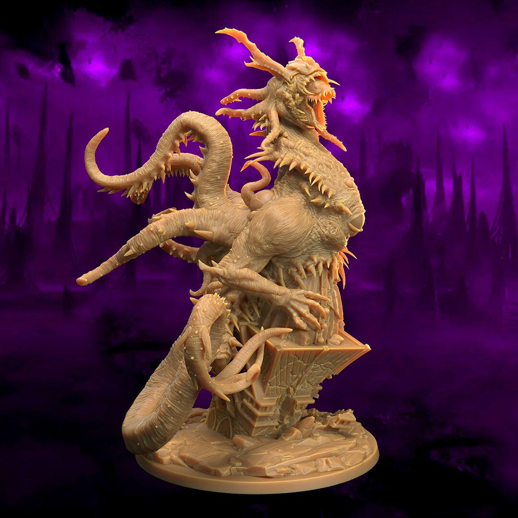 - Set: The Eldritch Lodge - Resolution: 0.03mm (3 Microns) - Scale: 100mm base - Material: Resin - Color: Gray / Fleshy - Base: Included as pictured in the image - Model Creator: Dragon Trappers All miniatures are printed at 0.03mm resolution (3 Microns) on a 4K LCD screen, this resulting in high-quality miniature prints. All prints are washed and cured to ensure as best a finish as possible. We try our very best to ensure supports are removed, but it is always possible that some light cleaning may be required.All miniatures will be posted in pieces to limit damage during postage.Fates Forge is officially licensed to sell physical prints of The Dragon TrappersPlease be aware the miniatures are printed in resin and so these models are not suitable for children. It is recommended to seal the Minifigures with a coat of primer before using them in your games.