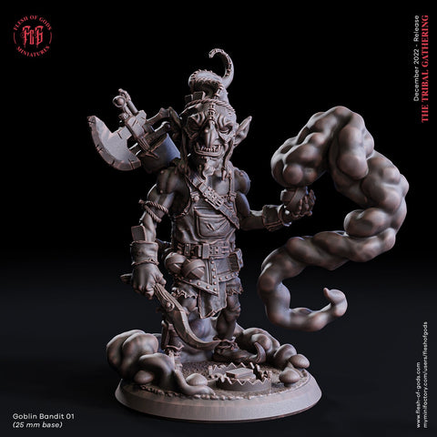 - Name: Goblin Bandits- Scale: 25mm - Goblins / 50mm - Mounted- Resolution: 0.03mm (3 Microns)- Material: Resin - Color: Gray / Fleshy- Base: Included as pictured in the image- Model Creator: Path of Gods Miniatures are printed in the original 32mm scale, if you need a different scale please request it. All miniatures are printed at 0.03mm resolution (3 Microns) on a 4K LCD screen, this resulting in high-quality miniature prints. All prints are washed and cured to ensure as best a finish as possible. We try our very best to ensure supports are removed, but it is always possible that some light cleaning may be required.Fates Forge is officially licensed to sell physical prints of DM Stash.Please be aware the miniatures are printed in resin and so these models are not suitable for children. It is recommended to seal the Minifigures with a coat of primer before using them in your games.