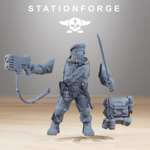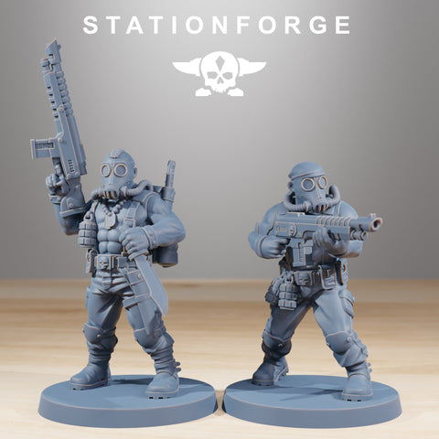 - Set: Station Forge - Resolution: 0.03mm (3 Microns) - Scale: Scaled to fit an 25mm base - Material: Resin - Color: Gray / Fleshy - Base: none13-part set consisting of 12 Corrupted Guards (scaled for 25mm base) alongside 1 Mutant (scaled for 40mm base).*NO BASE INCLUDED*All miniatures are printed at 0.03mm resolution (3 Microns) on a 4K LCD screen, this resulting in high-quality miniature prints. All prints are washed and cured to ensure as best a finish as possible. We try our very best to ensure supports are removed, but it is always possible that some light cleaning may be required.All miniatures will be posted in pieces to limit damage during postage.Fates Forge is officially licensed to sell physical prints of The Dragon TrappersPlease be aware the miniatures are printed in resin and so these models are not suitable for children. It is recommended to seal the Minifigures with a coat of primer before using them in your games.