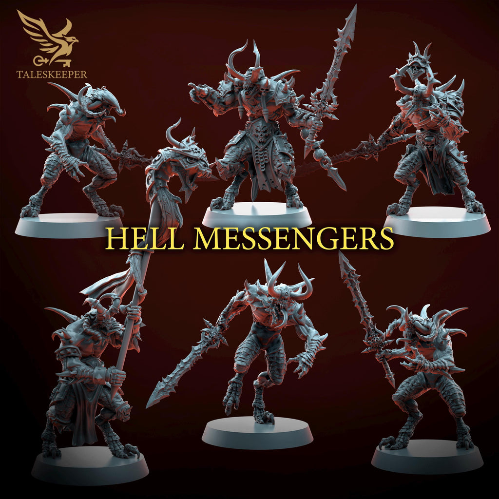 - Set: Tales Keeper - Includes: 6 demon characters with sword. - Base size: 32 mm - Resolution: 0.03mm (3 Microns) - Material: Resin - Color: Gray / Fleshy - Base: none*NO BASE INCLUDED*All miniatures are printed at 0.03mm resolution (3 Microns) on a 8K LCD screen, this resulting in high-quality miniature prints. All prints are washed and cured to ensure as best a finish as possible. We try our very best to ensure supports are removed, but it is always possible that some light cleaning may be required.All miniatures will be posted in pieces to limit damage during postage.Fates Forge is officially licensed to sell physical prints of Tales KeeperPlease be aware the miniatures are printed in resin and so these models are not suitable for children. It is recommended to seal the Minifigures with a coat of primer before using them in your games.