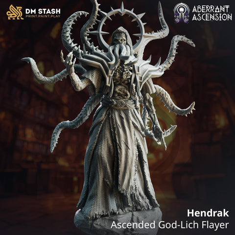 - Name: Hendrak - Ascended God-Lich Flayer- Set: Abherrant Ascension- Scale: 32mm or 75mm (25mm base)- Resolution: 0.03mm (3 Microns)- Material: Resin - Color: Gray / Fleshy- Base: Included as pictured in the image- Model Creator: DM Stash Miniatures are printed in the original 32mm scale, if you need a different scale please request it. All miniatures are printed at 0.03mm resolution (3 Microns) on a 4K LCD screen, this resulting in high-quality miniature prints. All prints are washed and cured to ensure as best a finish as possible. We try our very best to ensure supports are removed, but it is always possible that some light cleaning may be required.Fates Forge is officially licensed to sell physical prints of DM Stash.Please be aware the miniatures are printed in resin and so these models are not suitable for children. It is recommended to seal the Minifigures with a coat of primer before using them in your games.