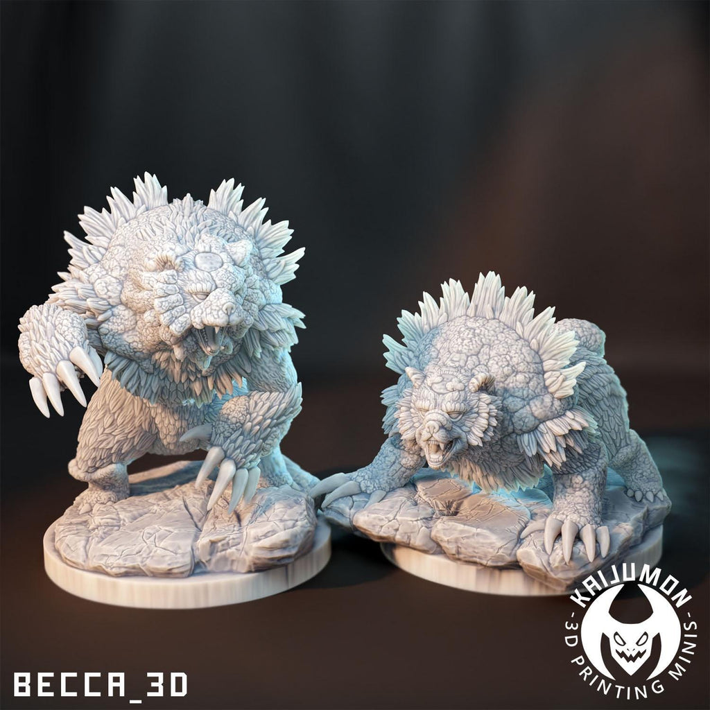 - Scale: Baby - 20mm base. Adult 1 - 50mm base. Adult 2 - 50mm base Bloodmoon - 50mm base - Resolution: 0.03mm (3 Microns) - Material: Resin - Color: Gray - Base: Included as pictured in the image - Model Creator: Kaijumon All miniatures are printed at 0.03mm resolution (3 Microns) on a 4K LCD screen, this resulting in high-quality miniature prints. All prints are washed and cured to ensure as best a finish as possible. We try our very best to ensure supports are removed, but it is always possible that some light cleaning may be required.Fates Forge is officially licensed to sell physical prints of Kaijumon.Please be aware the miniatures are printed in resin and so these models are not suitable for children. It is recommended to seal the Minifigures with a coat of primer before using them in your games.