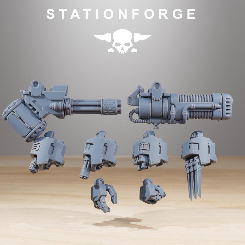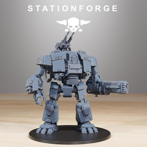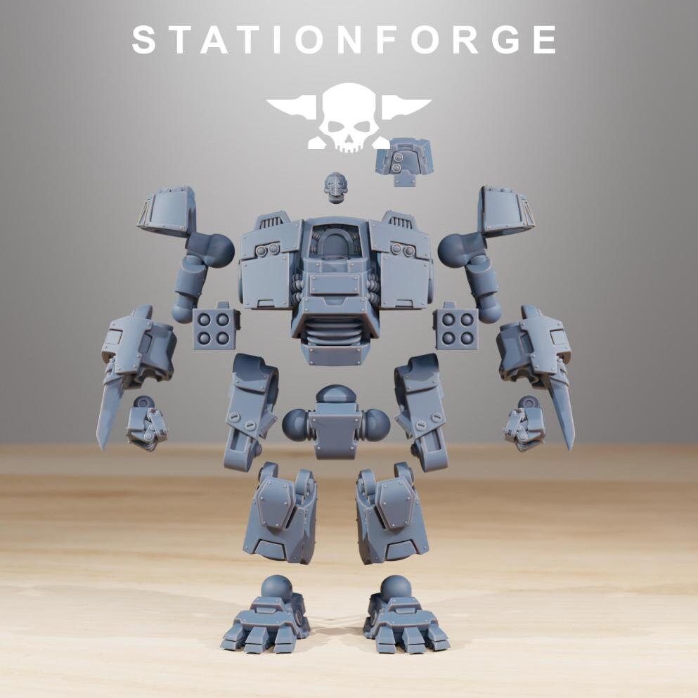 - Set: Station Forge - Resolution: 0.03mm (3 Microns) - Scale: Approx. 93mm tall without shoulder mounts. - Material: Resin - Color: Gray / Fleshy - Base: Included as pictured in the image*NO BASE INCLUDED*All miniatures are printed at 0.03mm resolution (3 Microns) on a 4K LCD screen, this resulting in high-quality miniature prints. All prints are washed and cured to ensure as best a finish as possible. We try our very best to ensure supports are removed, but it is always possible that some light cleaning may be required.All miniatures will be posted in pieces to limit damage during postage.Fates Forge is officially licensed to sell physical prints of Station ForgePlease be aware the miniatures are printed in resin and so these models are not suitable for children. It is recommended to seal the Minifigures with a coat of primer before using them in your games.