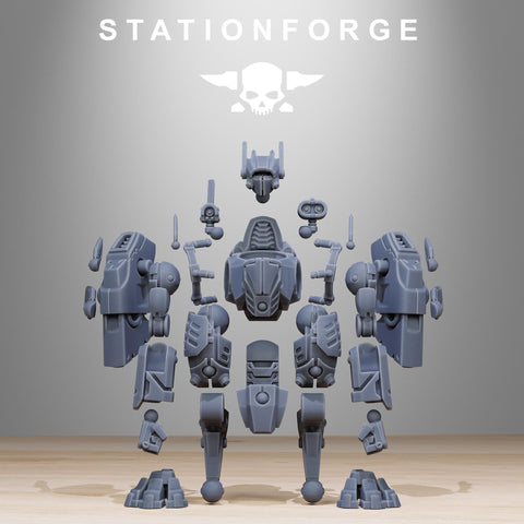 - Set: Station Forge - Consists of: 10 heads 4 hands 9 weapons 10 subsystems - Resolution: 0.03mm (3 Microns) - Scale: Scaled to fit an 60mm base - Material: Resin - Color: Gray / Fleshy - Base: Included as pictured in the image*NO BASE INCLUDED*All miniatures are printed at 0.03mm resolution (3 Microns) on a 4K LCD screen, this resulting in high-quality miniature prints. All prints are washed and cured to ensure as best a finish as possible. We try our very best to ensure supports are removed, but it is always possible that some light cleaning may be required.All miniatures will be posted in pieces to limit damage during postage.Fates Forge is officially licensed to sell physical prints of Station ForgePlease be aware the miniatures are printed in resin and so these models are not suitable for children. It is recommended to seal the Minifigures with a coat of primer before using them in your games.