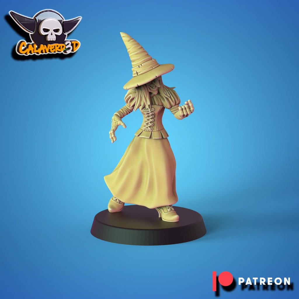 - Scale: 32mm - Resolution: 0.03mm (3 Microns) - Material: Resin - Color: Gray / Flesh (Pink) - Base: Included as pictured in the image - Model Creator: CalaverdThis set includes 16 miniatures that consist's of: - 2 x Old witches - 2 x Flying witches - 8 x Witches - 4 x Grand M witchMiniatures are printed in the original 32mm scale, if you need a different scale please request it.All miniatures are printed at 0.03mm resolution (3 Microns) on a 4K LCD screen, this resulting in high-quality miniature prints. All prints are washed and cured to ensure as best a finish as possible. We try our very best to ensure supports are removed, but it is always possible that some light cleaning may be required.All miniatures will be posted in pieces to limit damage during postage.Fates Forge is officially licensed to sell physical prints of Calaverd.Please be aware the miniatures are printed in resin and so these models are not suitable for children. It is recommended to seal the Minifigures with a coat of primer before using them in your games.